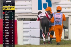 在F1日本站正赛中,贝尔曼在铃鹿赛道14号弯高速冲出赛道,贝尔曼下车后走路不稳。