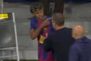巴萨与马竞比赛的最后阶段,莱万多夫斯基在最后时刻的进球让巴萨球员们欣喜若狂。然而亚马尔在队友进球的那一刻并没有流露出那种喜悦,而且,正如DAZN平台的画面所示,他带着相当明显的怒气离开了球场,不知在懊恼什么,甚至是在球员通道里遇到弗里克时也是如此,最后是门将教练何塞·德拉富恩特陪他走入了通道内部。